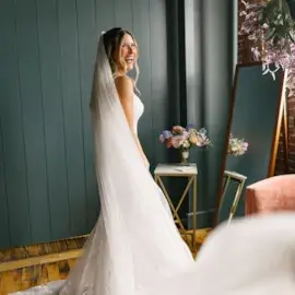 Known for its airy industrial architecture and modern warmth, The Heirloom offers versatility that suits a wide range of wedding styles. For Ericka and Brian, it served as the perfect canvas for a celebration centered on connection and atmosphere. From morning preparations in the venue’s bridal suite to the sparkler exit on McCarty Street, the space supported each chapter of the day with comfort and style. Guests enjoyed a seamless progression from ceremony to cocktail hour to dinner, all within the venue’s naturally cohesive layout.